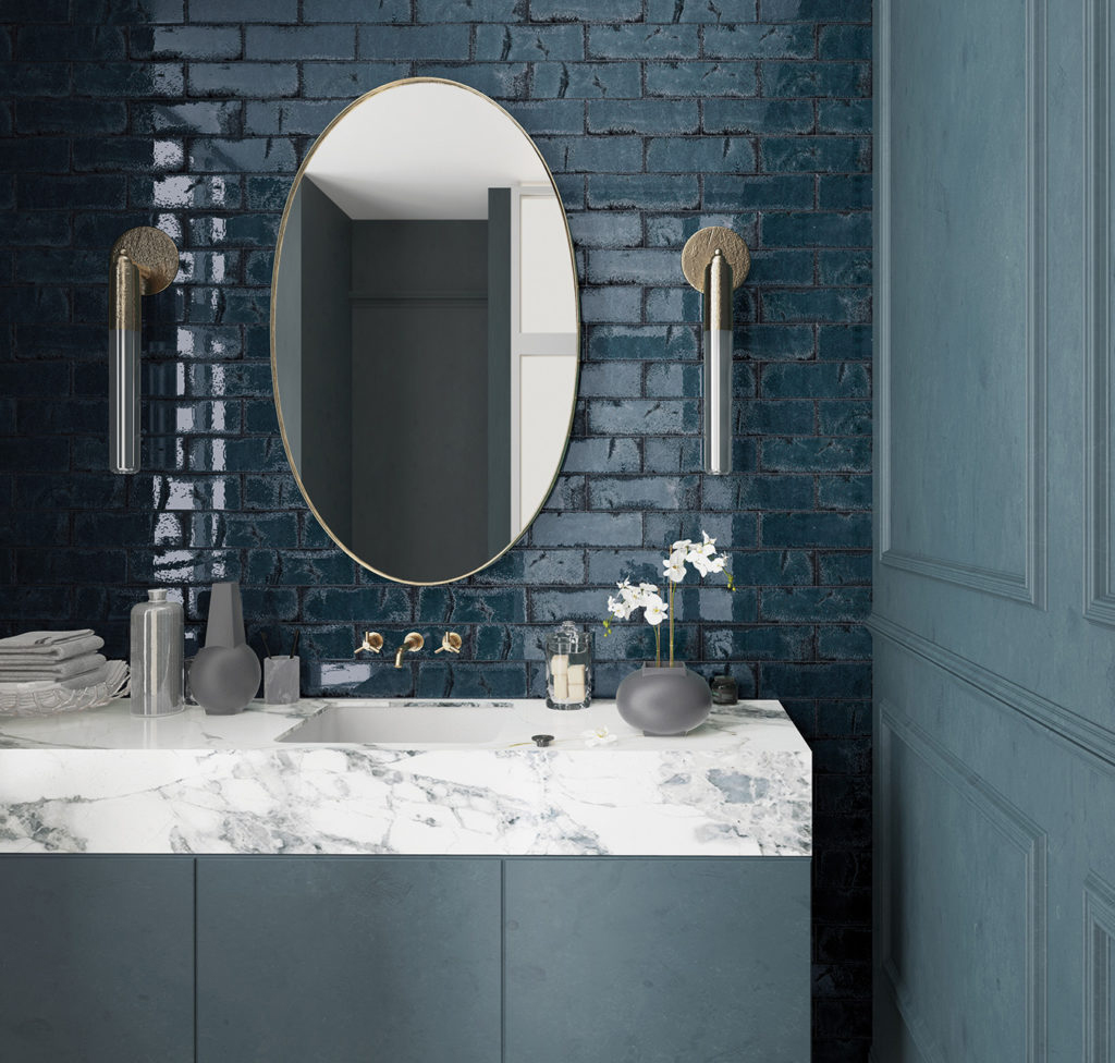 In 2023, we will see an influx of color palettes that are inspired by nature including deep blues, purples, greens, as well as warm, desert inspired neutrals. As wellness has become such an important theme in society over the past few years, homeowners are likely being drawn to cultivate a grounding, soothing atmosphere in their home. Rich tones such as terracotta, deep blues, and lush greens are ideal for creating a relaxed atmosphere reminiscent of nature. Terracotta, meaning “baked earth,” is a specific shade that will be in vogue, as it adds a warm, yet rich look and feel to a space. Rich greens will remain in-demand and may be paired with another trend such as high gloss tile, zellige tile, or in a monochromatic checkerboard pattern. This specific trend is ideal for a statement backsplash in a kitchen or statement wall in a bathroom, and overall is the antithesis of the craze for neutrals in past years.