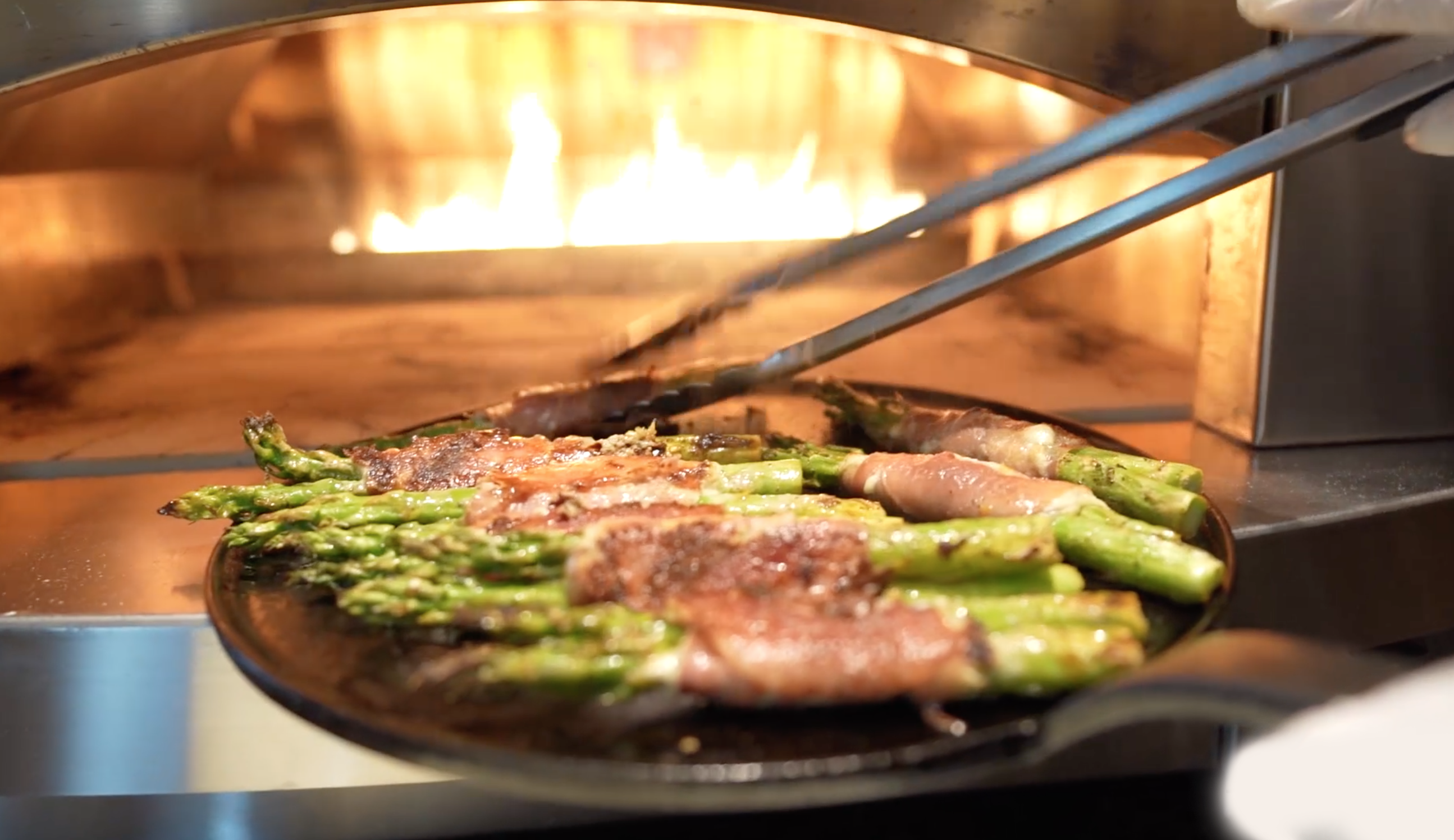With Erika’s help, Chef Kimberly uses the Kalamazoo Pizza Oven to make an easy appetizer of Prosciutto-wrapped asparagus with Boursin herbed cheese.