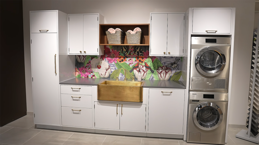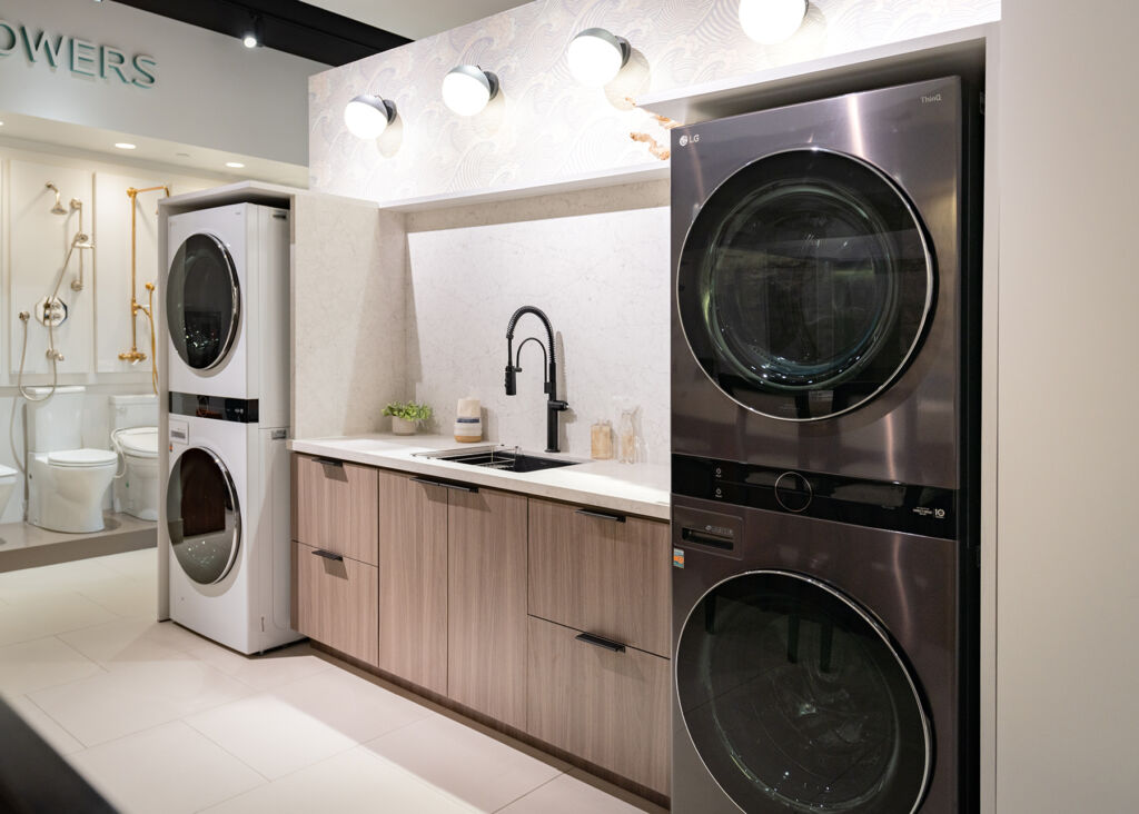 At PIRCH, we are transforming the chore of laundry to a pleasurable experience with custom designed laundry rooms like this one on display in our La Jolla showroom. LG washer…