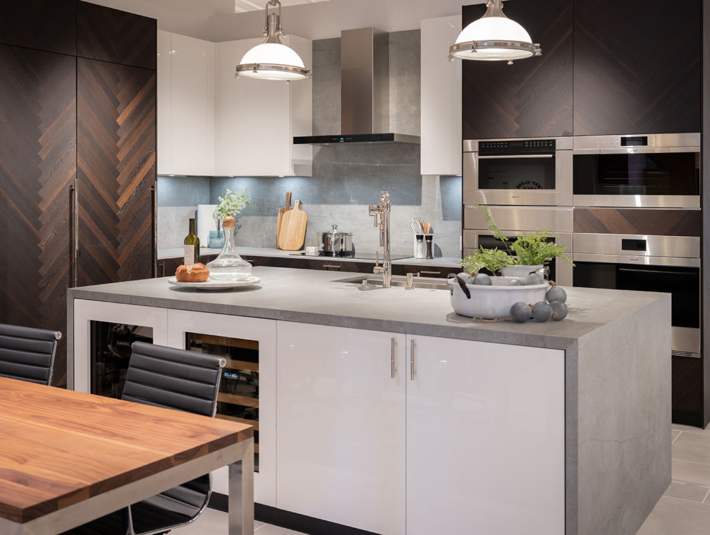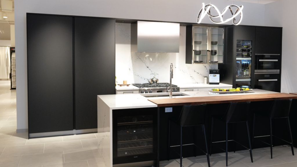 Take a quick virtual tour of this beautiful kitchen display in Mission Viejo featuring appliances from Sub-Zero, Wolf, and Cove. The cabinetry is from Aranelli, completed with a Waterstone Wheel…