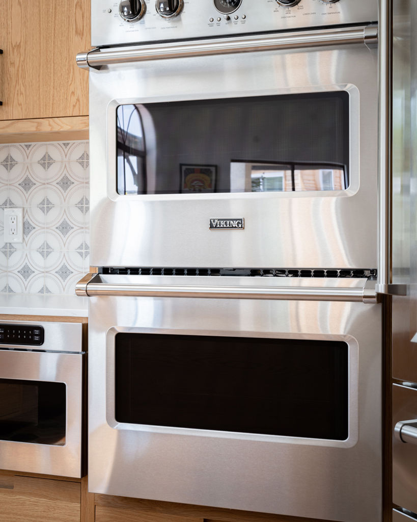 Anne was really looking forward to upgrading her oven because her previous oven was extremely small, it took a long time to heat up, and it didn’t cook food evenly. She ultimately decided on a Viking double wall oven for her new kitchen. “I didn’t realize how amazing an amazing oven can be,” comments Anne. These ovens heat evenly, and quickly! I bake a lot, and I love making pizza with my son. Everything bakes so evenly. Plus, I love the size. That was something that really drove me towards Viking, was the space that is allowed. You can fit nice big sheet pans in there and that was a big plus for me,” explains Anne.
